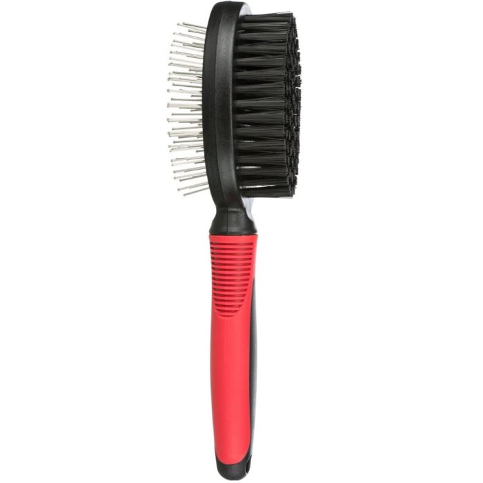 Dwustronna szczotka TRIXIE to idealne narzędzie do kompleksowej pielęgnacji sierści pupila – sprawdzi się zarówno w przypadku psów, jak i kotów. Dzięki połączeniu miękkiego włosia nylonowego oraz drucianych szpilek z zaokrąglonymi końcówkami, produkt doskonale sprawdza się do czesania zarówno włosa okrywowego, jak i podszerstka.