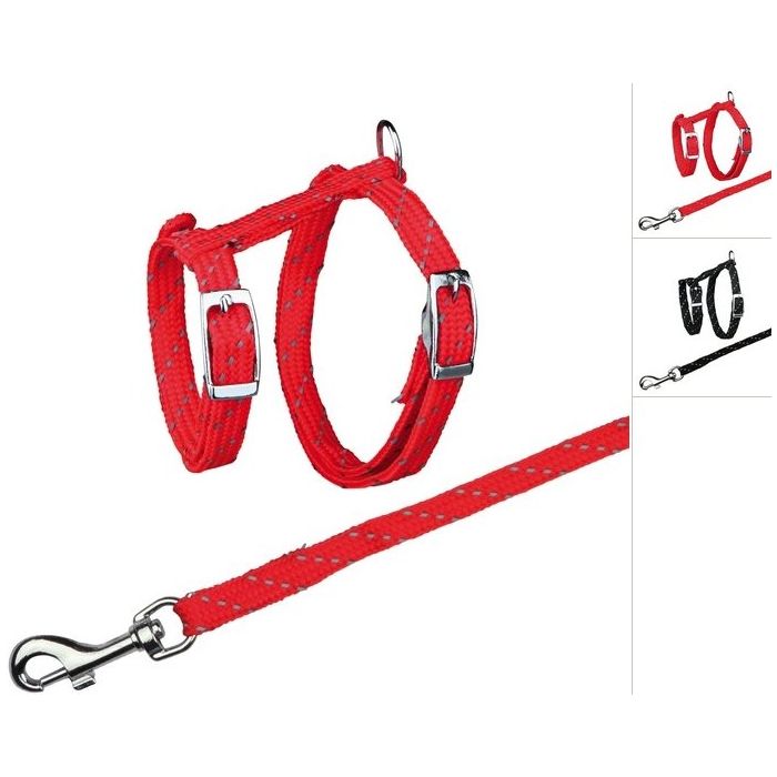 Zadbaj o bezpieczeństwo swojego kota podczas wspólnych spacerów dzięki praktycznym i wygodnym szelkom z odblaskami, wyposażonym w dopasowaną smycz o długości 1,2 m. Zestaw został wykonany z trwałej, regulowanej taśmy parcianej, co umożliwia łatwe i precyzyjne dopasowanie do rozmiaru kota – obwód szyi i klatki piersiowej można regulować w zakresie 18–35 cm.