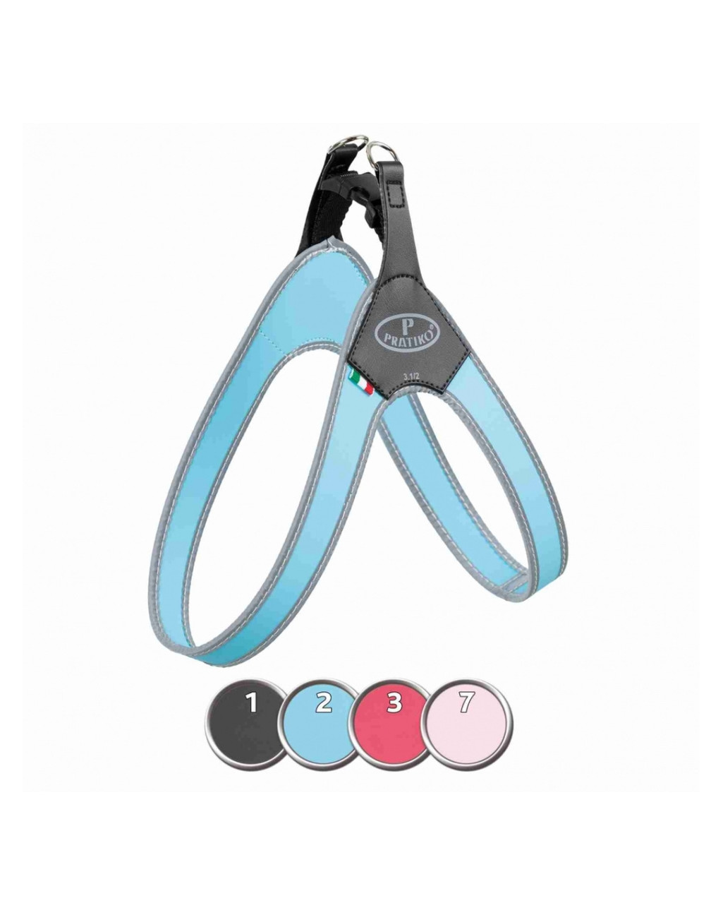 Miękkie i wytrzymałe szelki dla psa włoskiej marki Pratiko. Są łatwe do założenia, mają elementy odblaskowe.