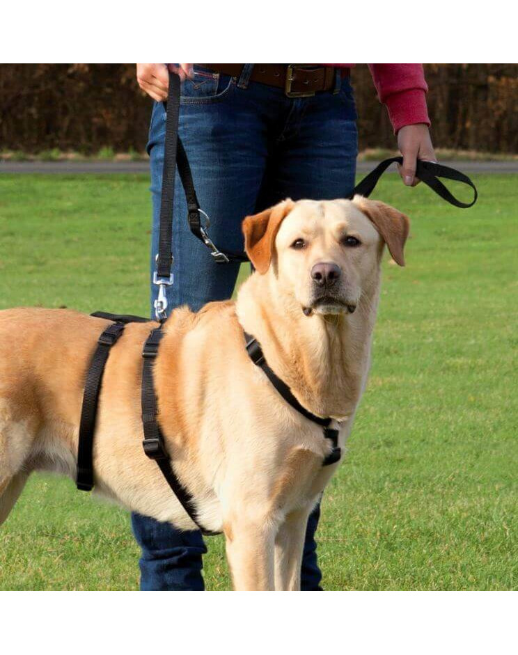 Nylonowe szelki dla psów, które łatwo wystraszyć. Optymalna regulacja za pomocą pasków z regulacją oraz pasków na rzep na plecach. Wygodne w noszeniu, dzięki wykończeniom z neoprenu, odpinany pas biodrowy.