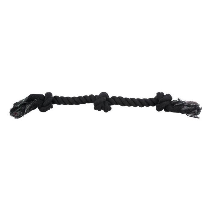 Sznur z przyjemnego i wytrzymałego materiału, połączenie bawełny i poliestru daje najlepszy rezultat w zabawkach dla psa. Sznur na środku posiada dodatkowy węzeł, który zwiększa stabilność trzymania zabawki i poprawia komfort zabawy. Sznur może służyć również do samodzielnej zabawy psa.
