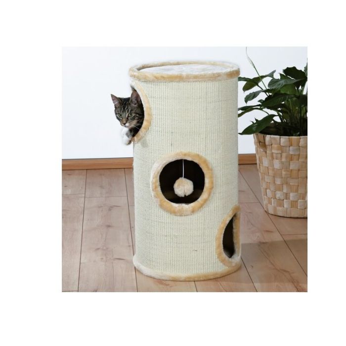 Koty uwielbiają przebywać w tak miłym, przytulnym miejscu. Drapak posiada pluszowe wykończenie. Wykonany jest z sizalu, bardzo mocnego włókna odpornego na zniszczenie. Trzy poziomy na których kot może bawić się, leniuchować, spać. Dodatkowo do drapaka przymocowany jest pluszowy pompon, który pobudzi kota do zabawy.
