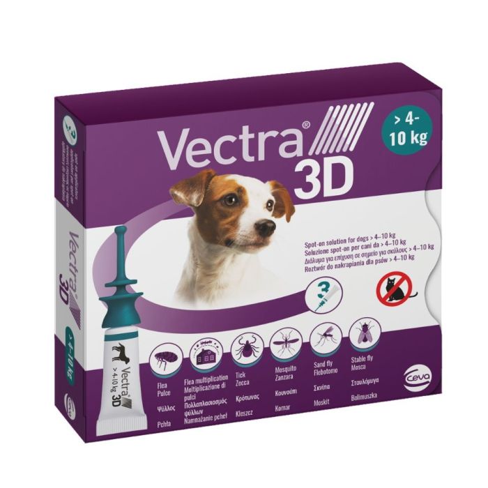VECTRA 3D Roztwór do nakrapiania na pchły i kleszcze dla psów >4-10kg w pipecie 3szt.