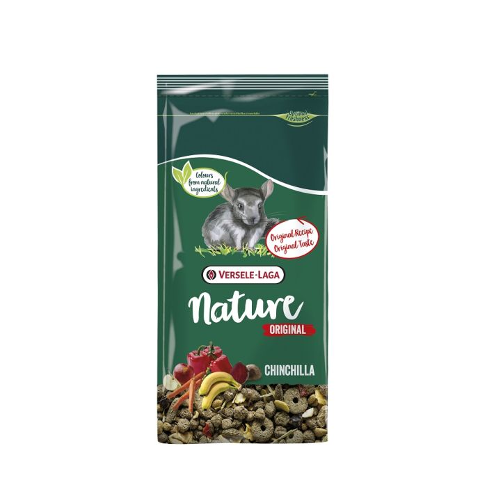 Nature Original Chinchilla to pełnowartościowa karma specjalnie dostosowana, aby zaspokoić całkowite zapotrzebowanie żywieniowe szynszyli. Ta wysokiej jakości mieszanka smacznych składników zawiera wszelkie niezbędne składniki odżywcze, witaminy i minerały, których Twój pupil potrzebuje, aby prowadzić beztroskie życie i cieszyć się pełnią energii. Błonnik, zioła, warzywa i owoce zawarte w mieszance przyczyniają się do doskonałego trawienia, utrzymania dobrego stanu uzębienia, błyszczącej sierści i doskonałego zdrowia. Duża różnorodność składników gwarantuje dobry smak i doskonałe wchłanianie. Dzięki temu karma Nature Original to idealny wybór na codzienną porcję rozkoszy dla Twojej szynszyli!
