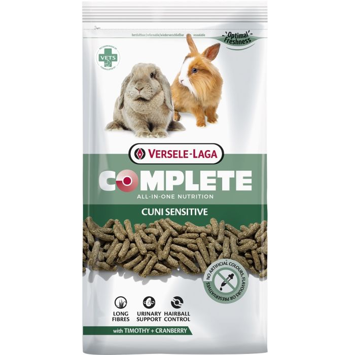 Cuni Sensitive Complete to w 100% ekstrudowana karma o zmniejszonej wartości energetycznej, przeznaczona dla wrażliwych, mało aktywnych lub starszych królików. Wspomaga trawienie i prawidłowe funkcjonowanie dróg moczowych.