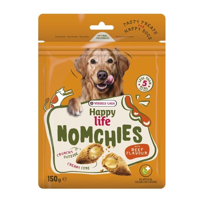Happy Life NOMCHIES with BEEF FLAVOUR to chrupiący przysmak dla psa z kremowym nadzieniem.