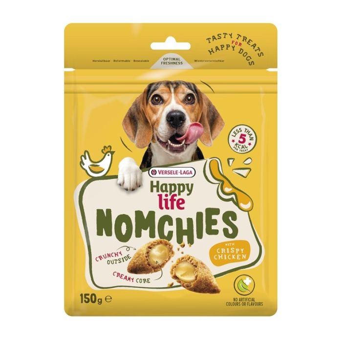 Happy Life NOMCHIES with CRISPY CHICKEN to chrupiący przysmak dla psa z kremowym nadzieniem.