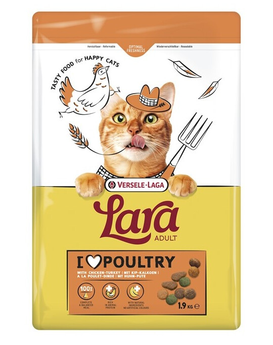 Daj swojemu kotu wszystko, czego potrzebuje, w formie, którą uwielbia – Lara Adult Turkey & Chicken to pełnowartościowa karma sucha o wyjątkowym smaku kurczaka i indyka. Zapewnia dorosłym kotom kompletne i zbilansowane żywienie każdego dnia, dbając o ich zdrowie, energię i witalność.