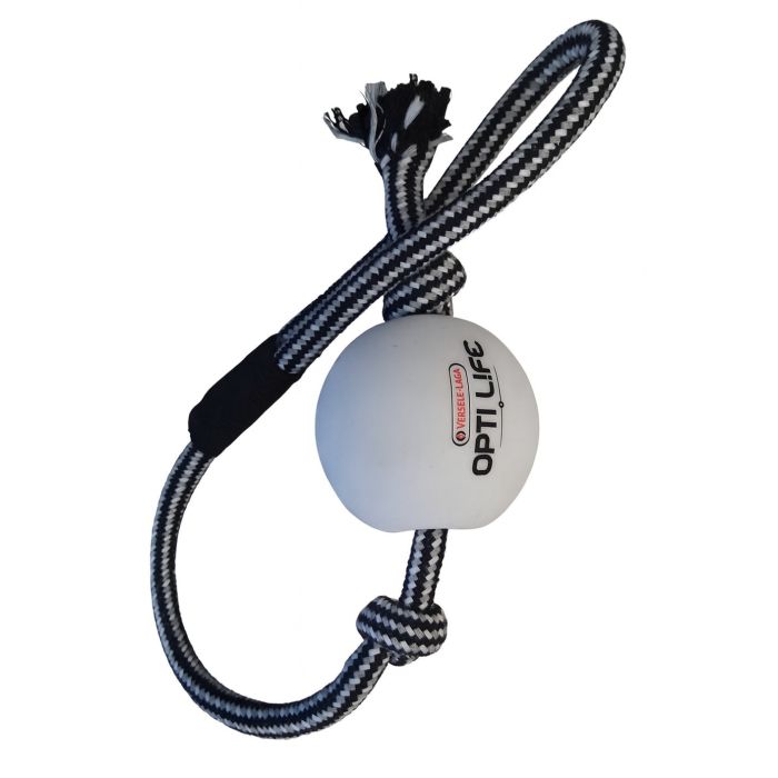 Zabawka dla psa typu szarpak z piłką na sznurku marki Opti Life. Idealna do aportowania, rzucania i przeciągania.