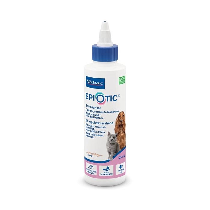 Epiotic Ear Care Solution to dobrze tolerowany płyn micelarny odpowiedni do codziennej pielęgnacji uszu psów, kotów, szczeniąt i kociąt, a także przed podaniem.