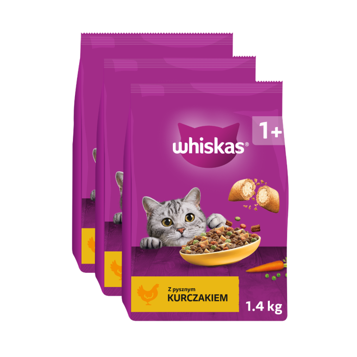 WHISKAS Adult 3x1,4 kg sucha karma pełnoporcjowa dla dorosłych kotów z pysznym kurczakiem