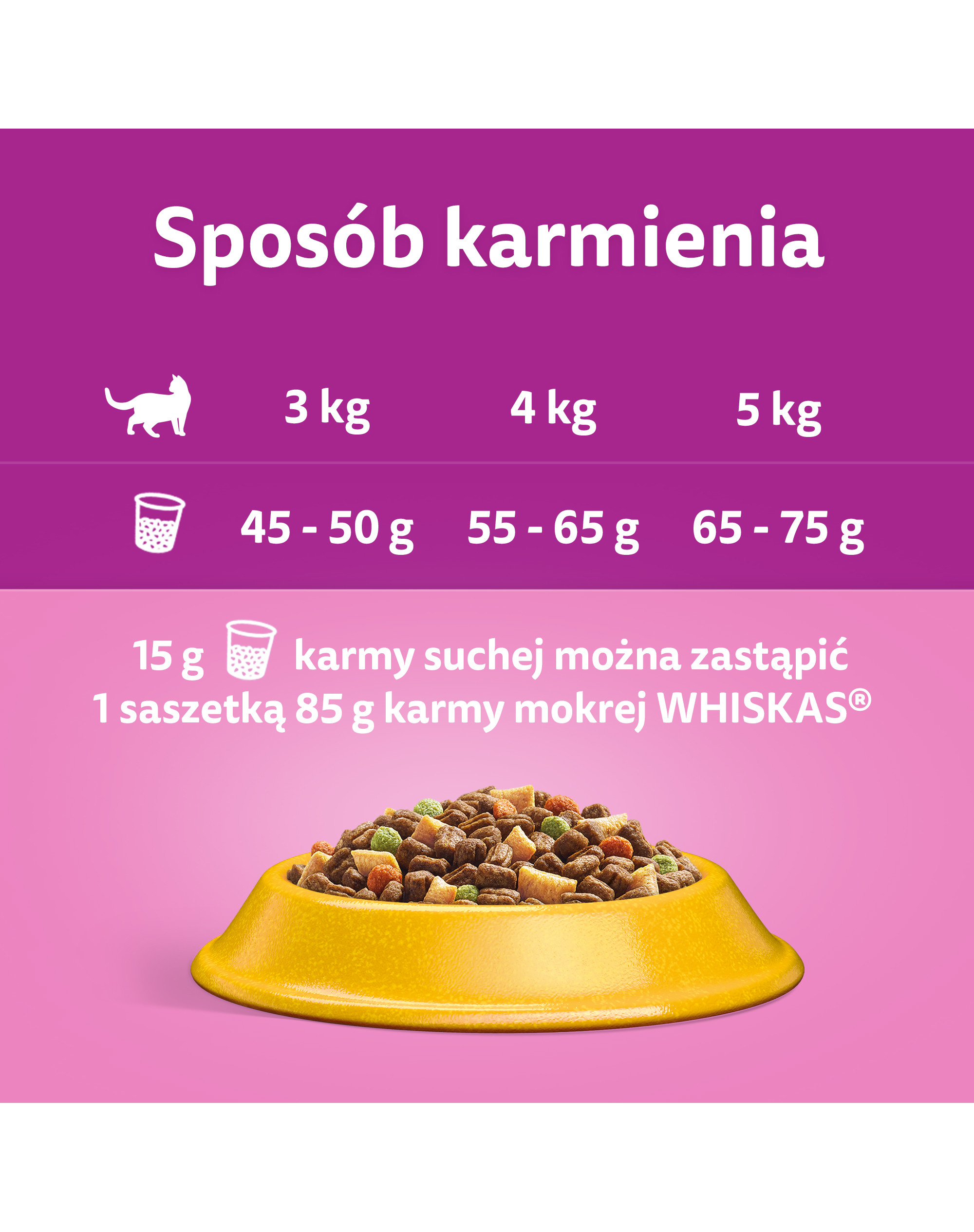 15 g karmy suchej można zastąpić 1 saszetką 85 g karmy mokrej WHISKAS.