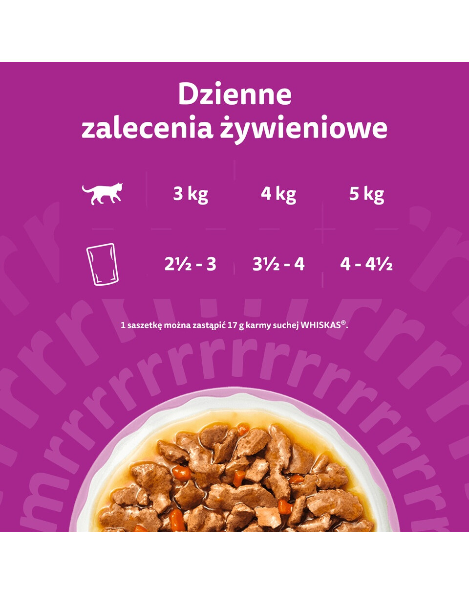 1 saszetkę można zastąpić 17 g karmy suchej WHISKAS.