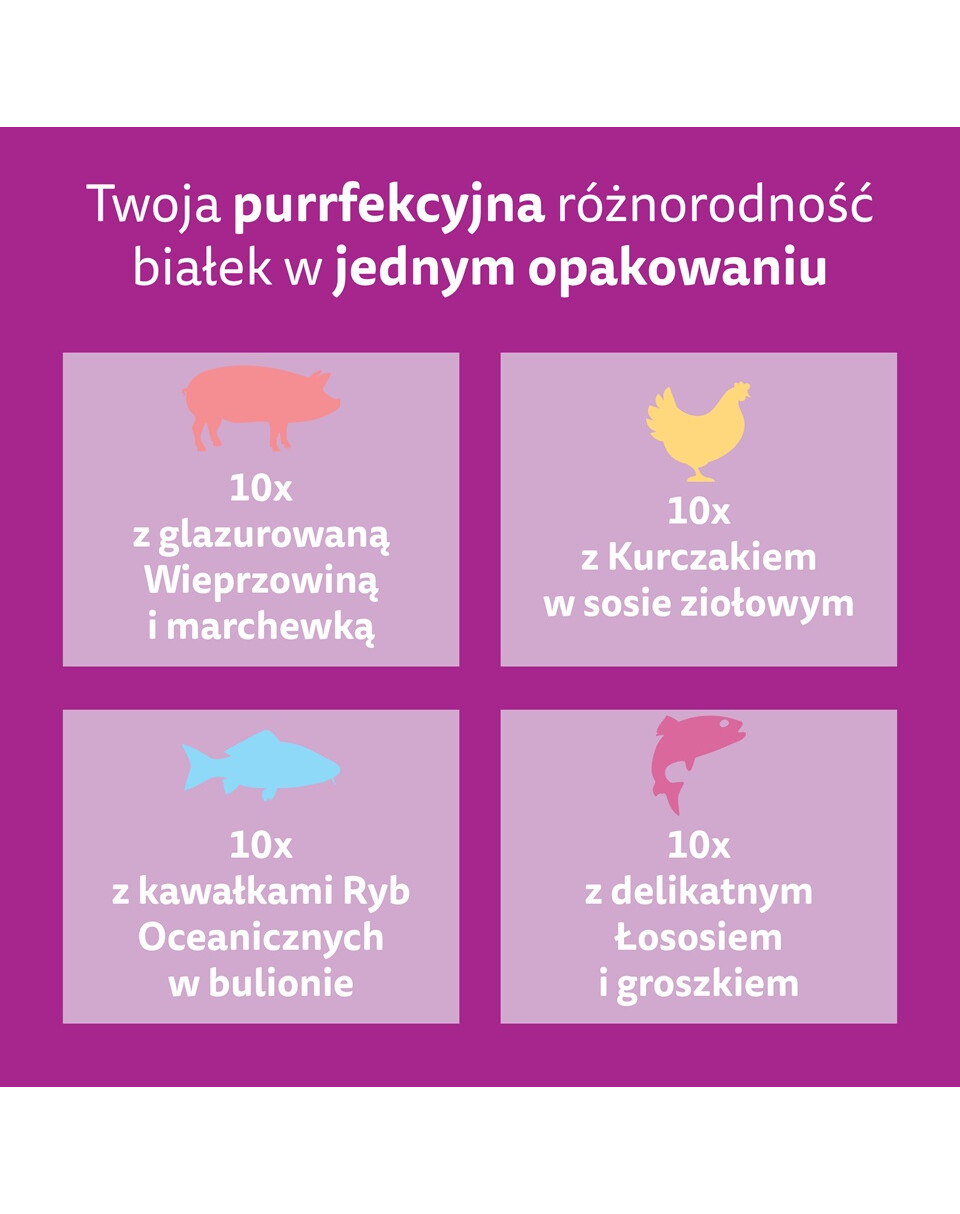 Znajdź drogę do świata idealnie aromatycznych posiłków. Tam, gdzie specjalnie wyselekcjonowane składniki są pełne aromatów, które zachwycą kocie zmysły. Obficie polany smakowitym sosem – każdy posiłek smakuje tak samo dobrze, jak pachnie.