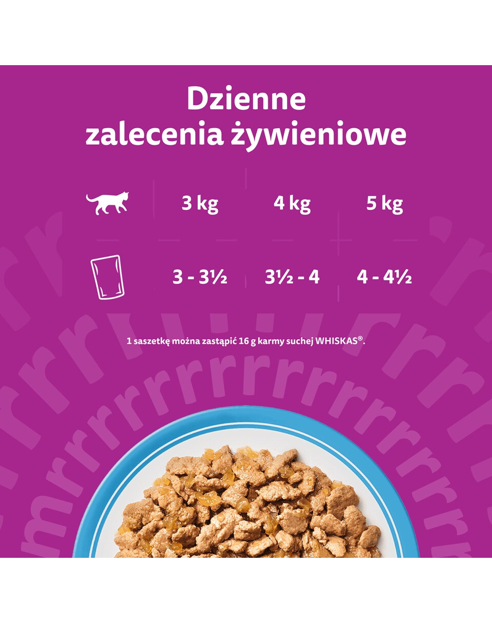 1 saszetkę można zastąpić 17 g karmy suchej WHISKAS.