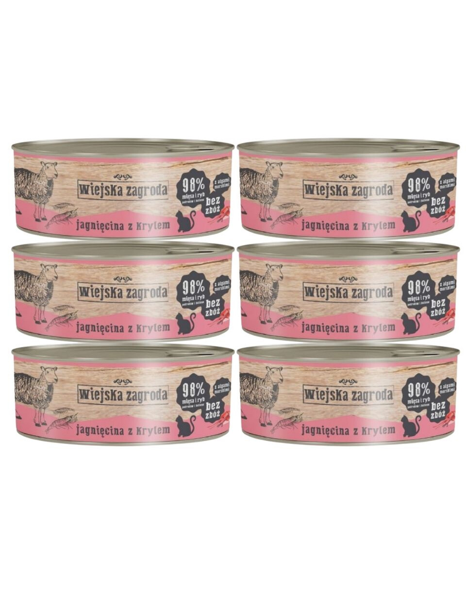 WIEJSKA ZAGRODA Adult Jagnięcina i kryl 6x85 g puszka dla kota
