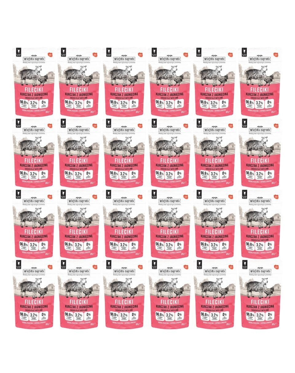 WIEJSKA ZAGRODA Fileciki Kurczak z jagnięciną mokra karma dla kota 24x85 g