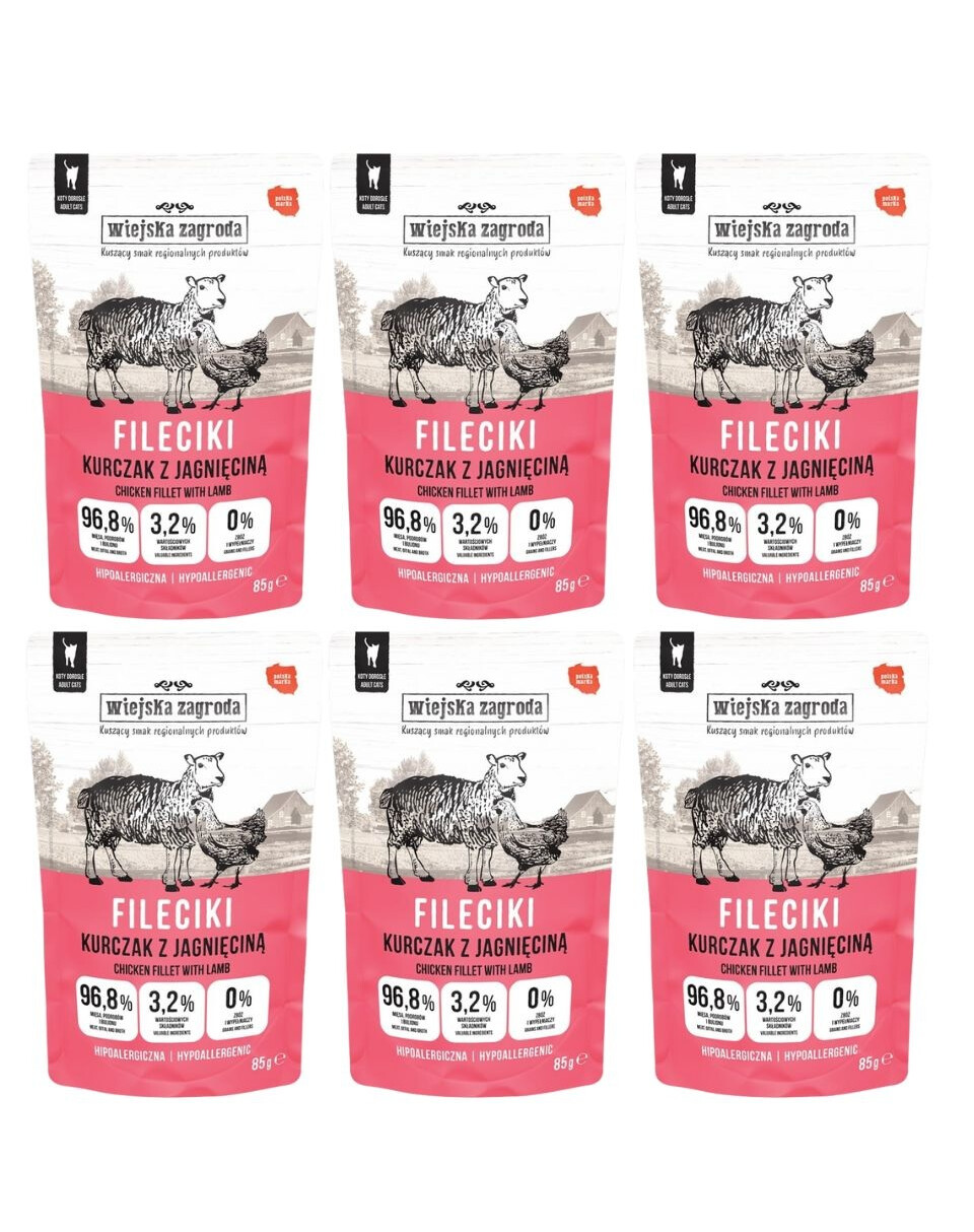 Dlaczego warto wybrać fileciki z kurczaka i jagnięciny od Wiejskiej Zagrody?Wiejska Zagroda karma mokra dla kota fileciki Kurczak z Jagnięciną to idealna mokra karma dla kotów dorosłych. Dzięki wysokiej zawartości mięsa i delikatnej strukturze filecików doskonale sprawdzi się zarówno dla wybrednych kotów, jak i tych z wrażliwym układem pokarmowym. Dzięki praktycznym saszetkom 85 g, karmienie kota jest niezwykle wygodne. Wybierz polską markę cenioną za najwyższą jakość składników i zapewnij swojemu pupilowi wszystko, co