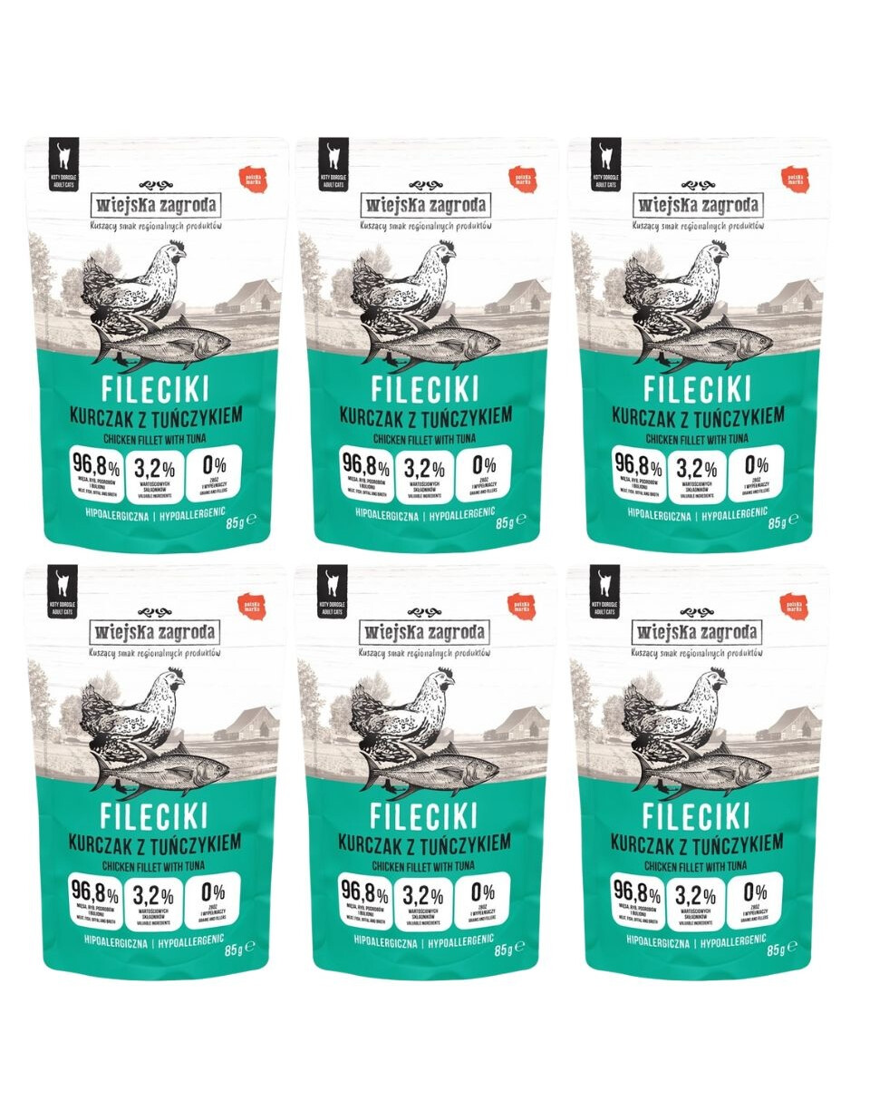 WIEJSKA ZAGRODA Fileciki Kurczak z tuńczykiem mokra karma dla kota 6x85 g