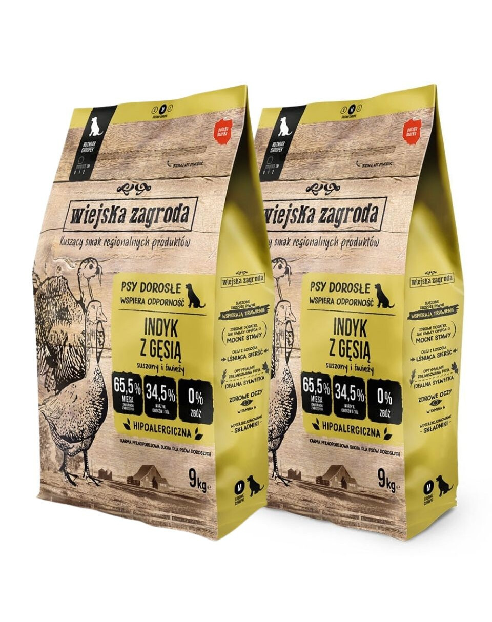 WIEJSKA ZAGRODA Indyk z gęsią to pełnoporcjowa karma dla psów ras średnich.