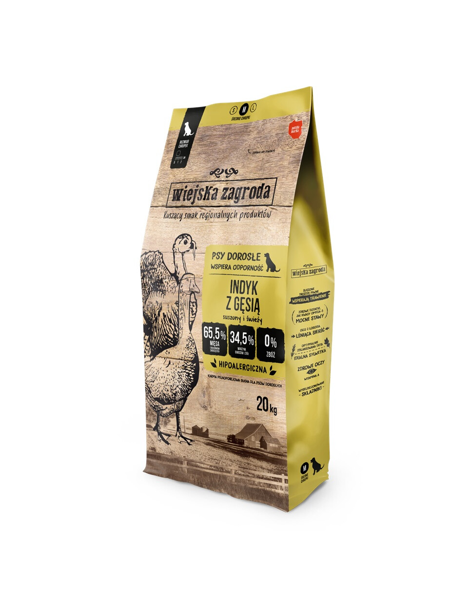 Wiejska Zagroda to polska, przygotowana z najwyższą starannością pełnoporcjowa karma dla psa. Regionalne produkty od lokalnych dostawców to gwarancja świeżości i jakości składników, z których przygotowujemy nasze karmy. Karmy powstały z potrzeby podania naszym psom tego, czego najbardziej potrzebują, czyli mięsa i składników zwierzęcych!