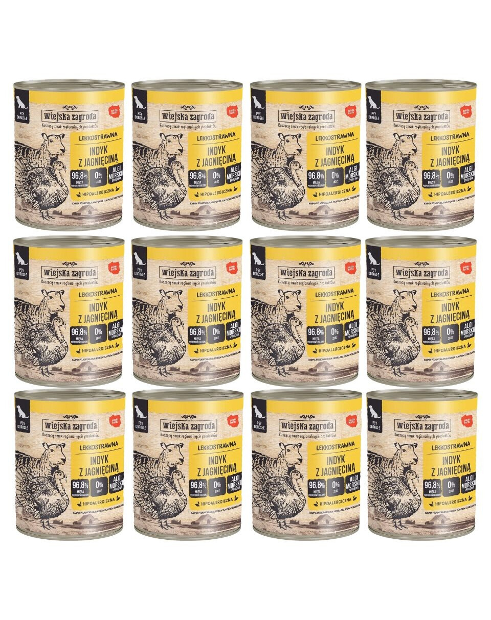 WIEJSKA ZAGRODA Indyk z jagnięciną 12x800 g bezzbożowa mokra karma dla psa