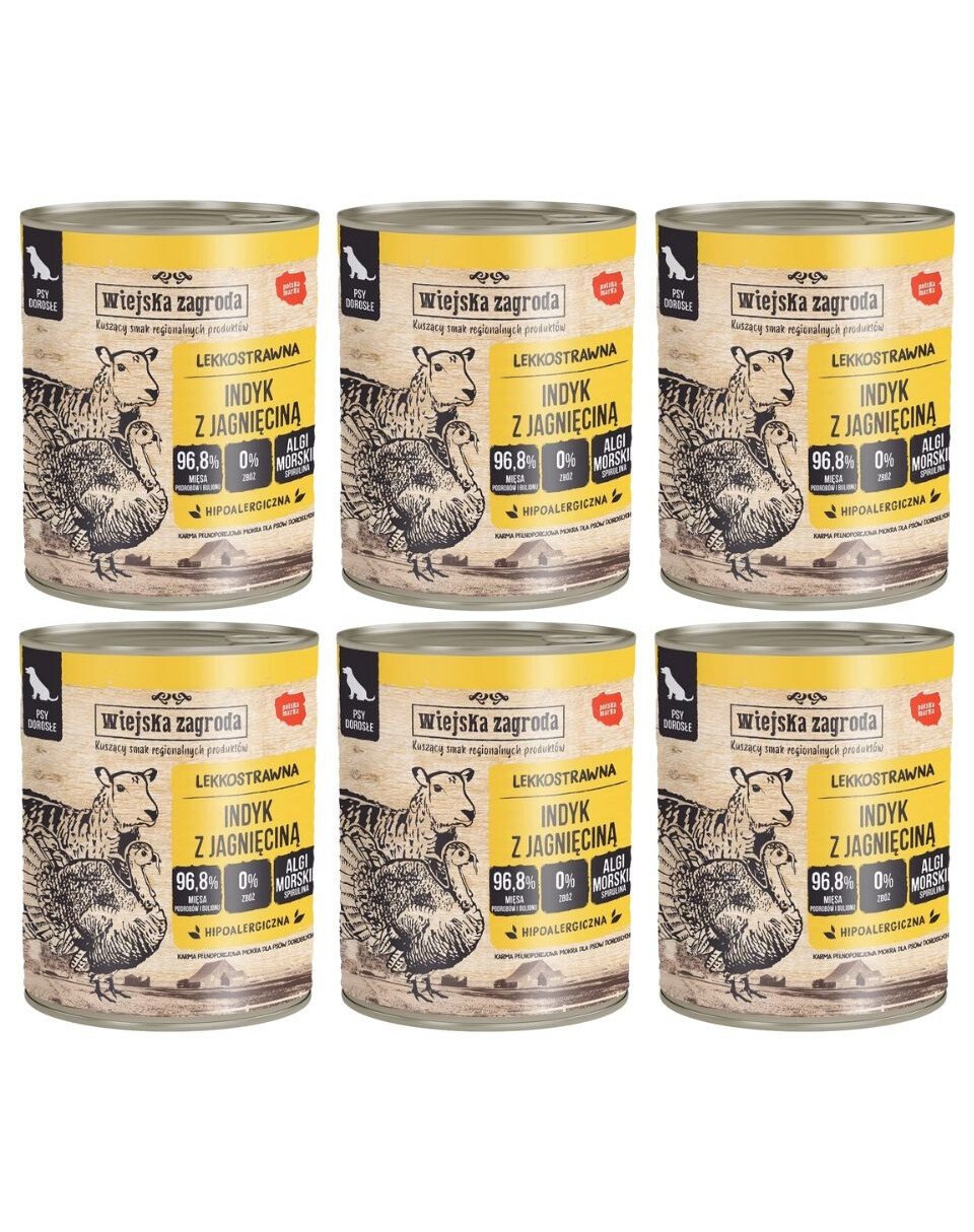 WIEJSKA ZAGRODA Indyk z jagnięciną 6x800 g bezzbożowa mokra karma dla psa