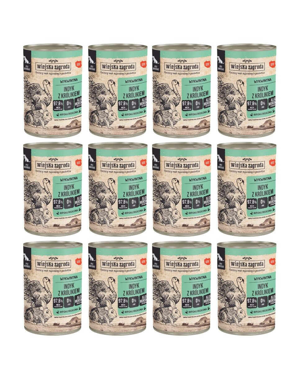 WIEJSKA ZAGRODA Indyk z królikiem mokra karma dla psów 12x400 g