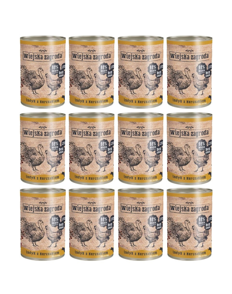 WIEJSKA ZAGRODA Indyk z kurczakiem 12x400g puszka dla kociąt