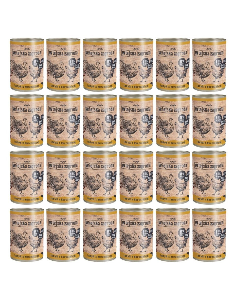 indyk 35% (w tym ok. 80% mięsa z mięśni i serc, ok. 20% wątróbka), kurczak 35% (100% mięsa z mięśni), bulion z indyka i kurczaka 28,4%, minerały 1%, olej z łososia 0,5%, spirulina 0,1%.