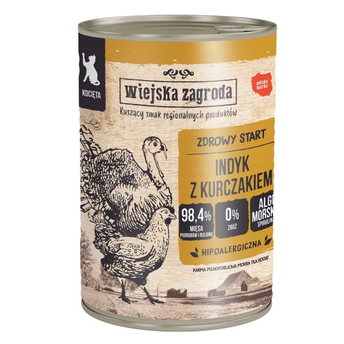 WIEJSKA ZAGRODA Indyk z kurczakiem 400g puszka dla kociąt
