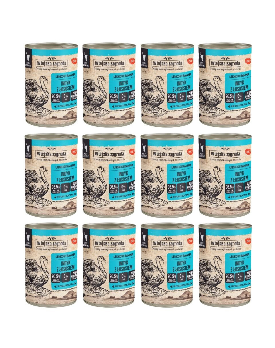 WIEJSKA ZAGRODA Indyk z łososiem mokra karma dla kotów 12x400 g