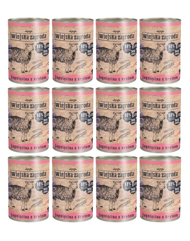 WIEJSKA ZAGRODA Jagnięcina z krylem 12x400g puszka dla kota