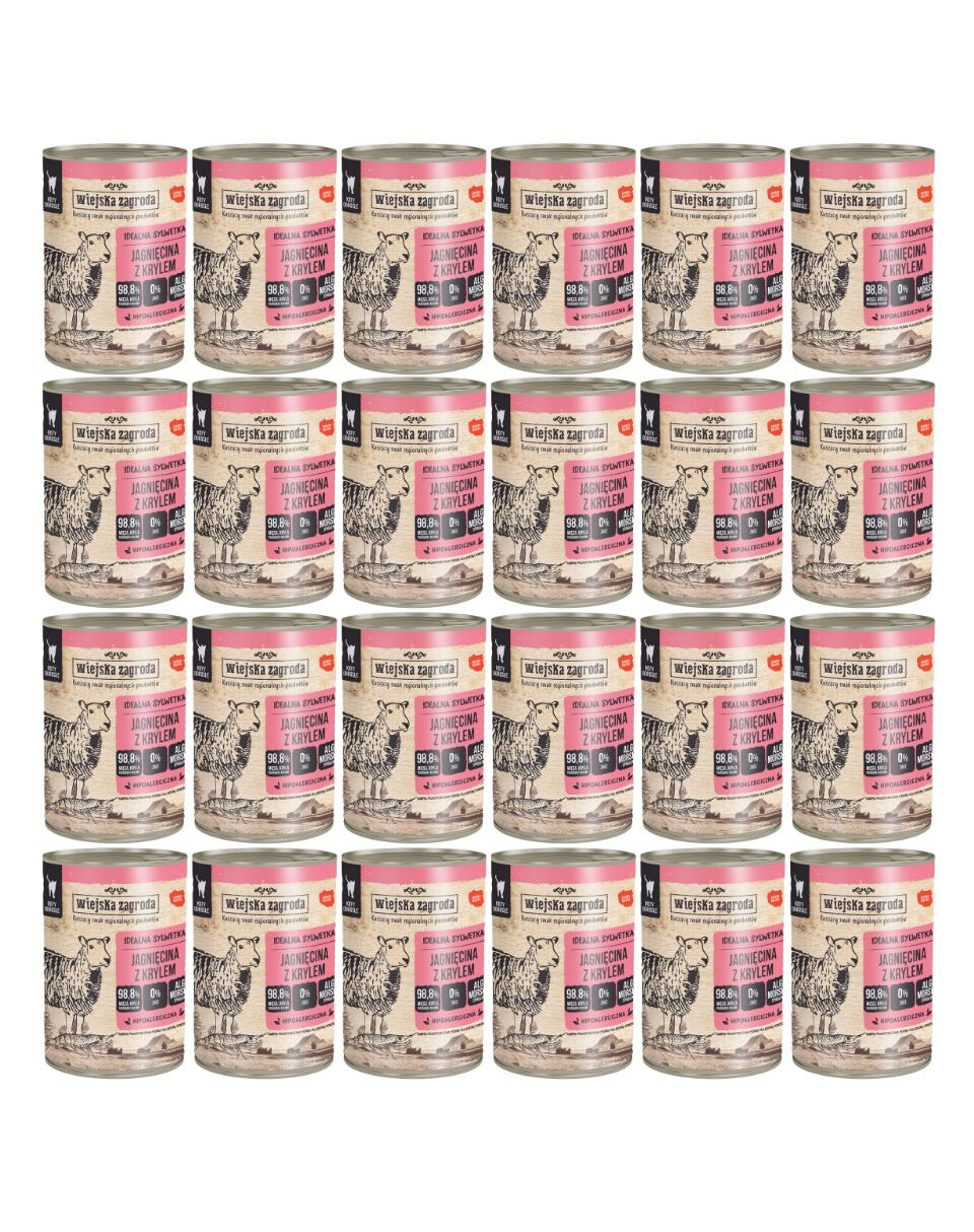 WIEJSKA ZAGRODA Jagnięcina z krylem 24x400g puszka dla kota