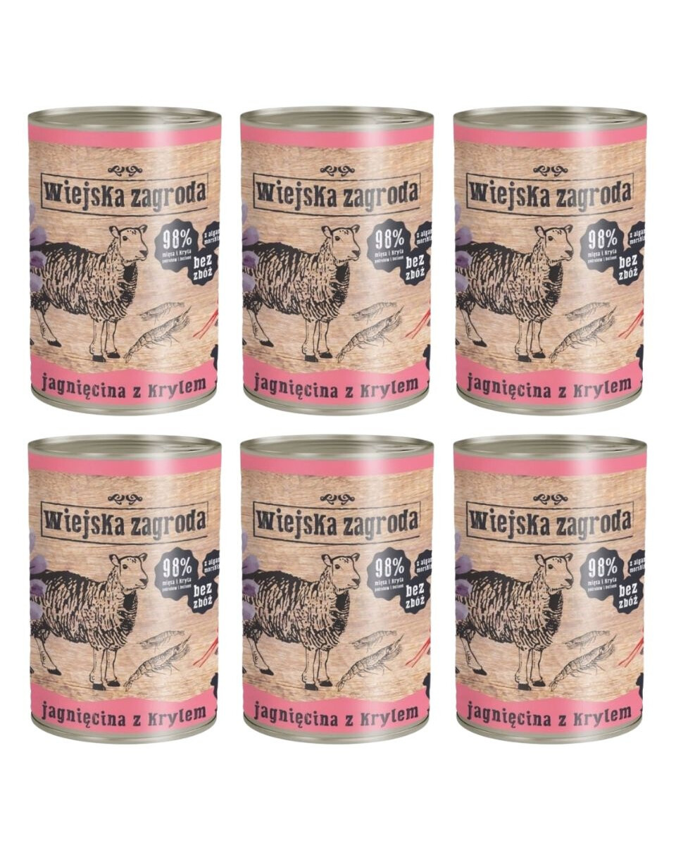 WIEJSKA ZAGRODA Jagnięcina z krylem 6x400g puszka dla kota
