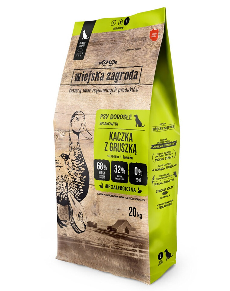 Wiejska Zagroda to polska, przygotowana z najwyższą starannością pełnoporcjowa karma dla psa. Regionalne produkty od lokalnych dostawców to gwarancja świeżości i jakości składników, z których przygotowujemy nasze karmy. Karmy powstały z potrzeby podania naszym psom tego, czego najbardziej potrzebują, czyli mięsa i składników zwierzęcych!