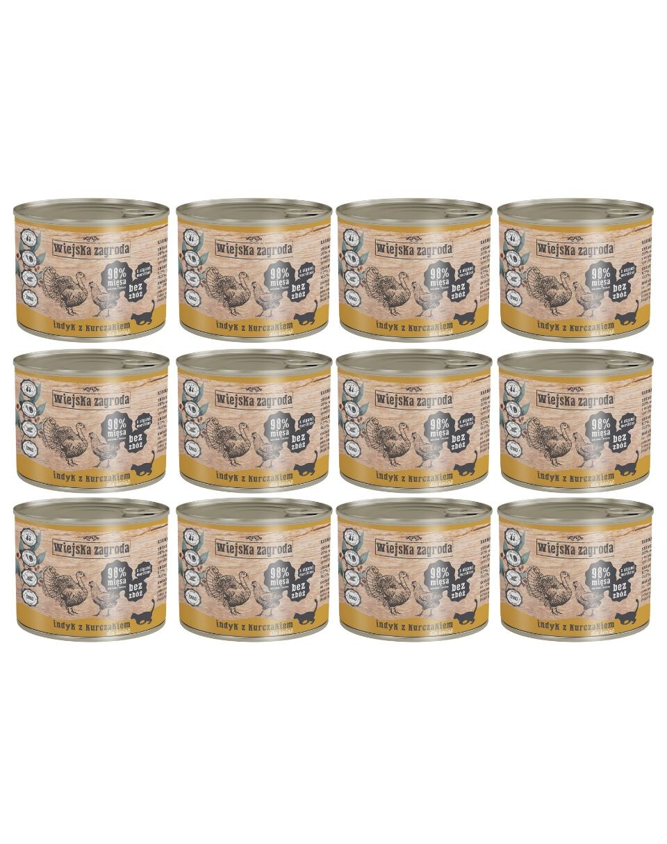 WIEJSKA ZAGRODA Kitten Indyk i kurczak 12x200 g puszka dla kociąt