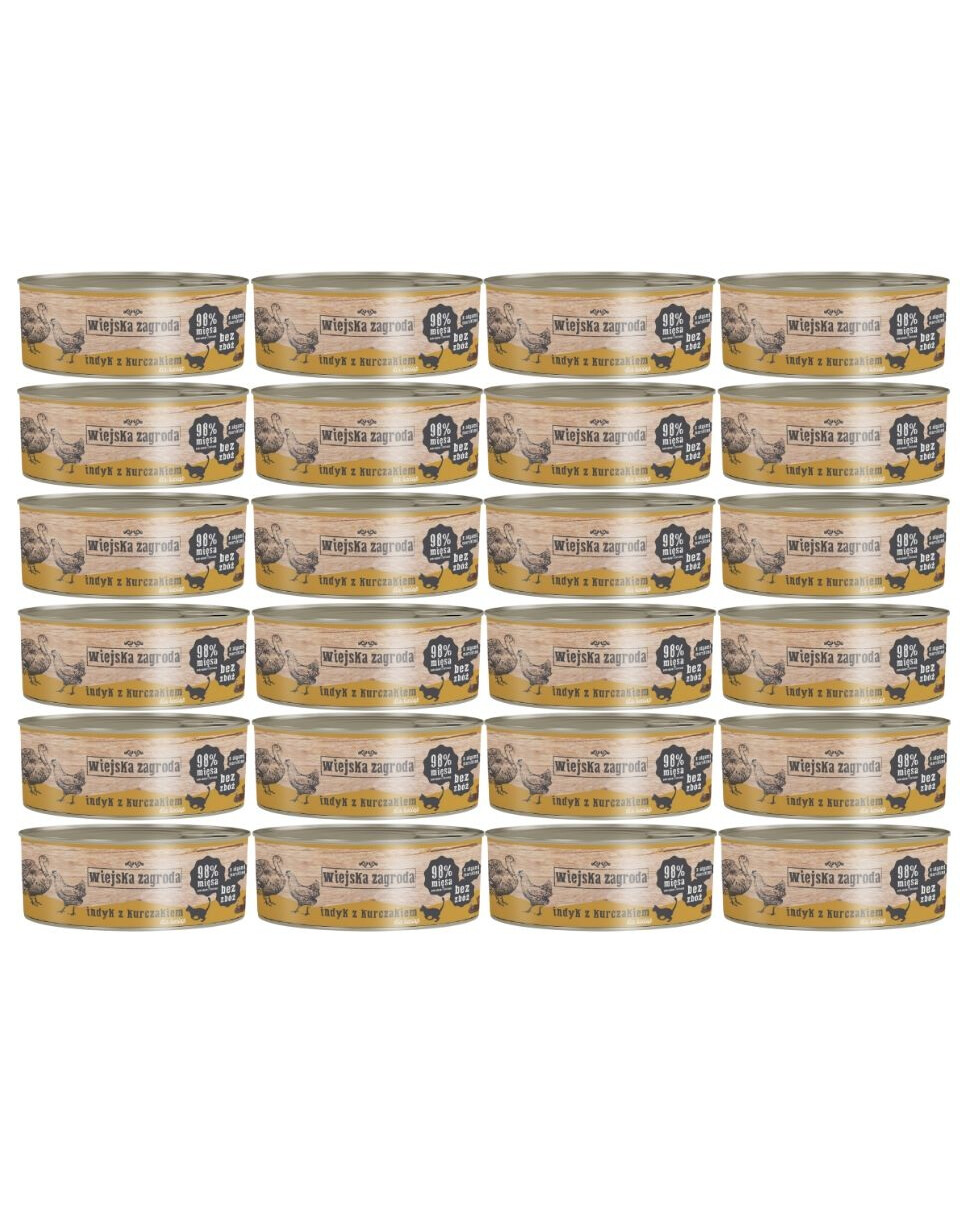 WIEJSKA ZAGRODA Kitten Indyk i kurczak 24x85 g puszka dla kociąt