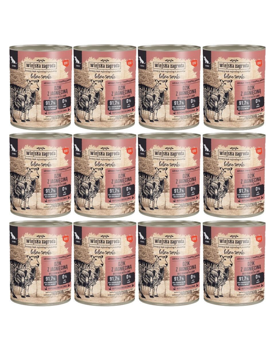 WIEJSKA ZAGRODA Leśne smaki Dzik z jagnięciną mokra karma dla psów starszych 12x800 g