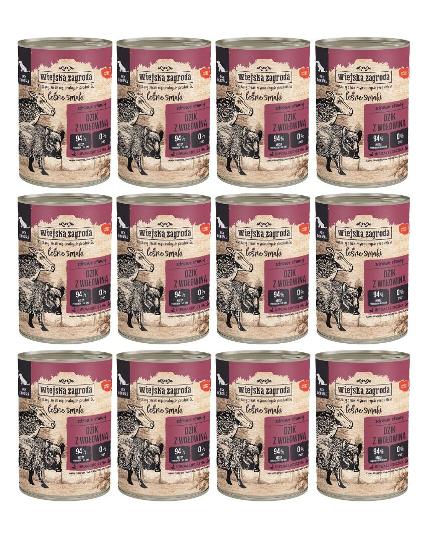WIEJSKA ZAGRODA Leśne smaki Dzik z wołowiną 12x400 g mokra karma dla psów dorosłych