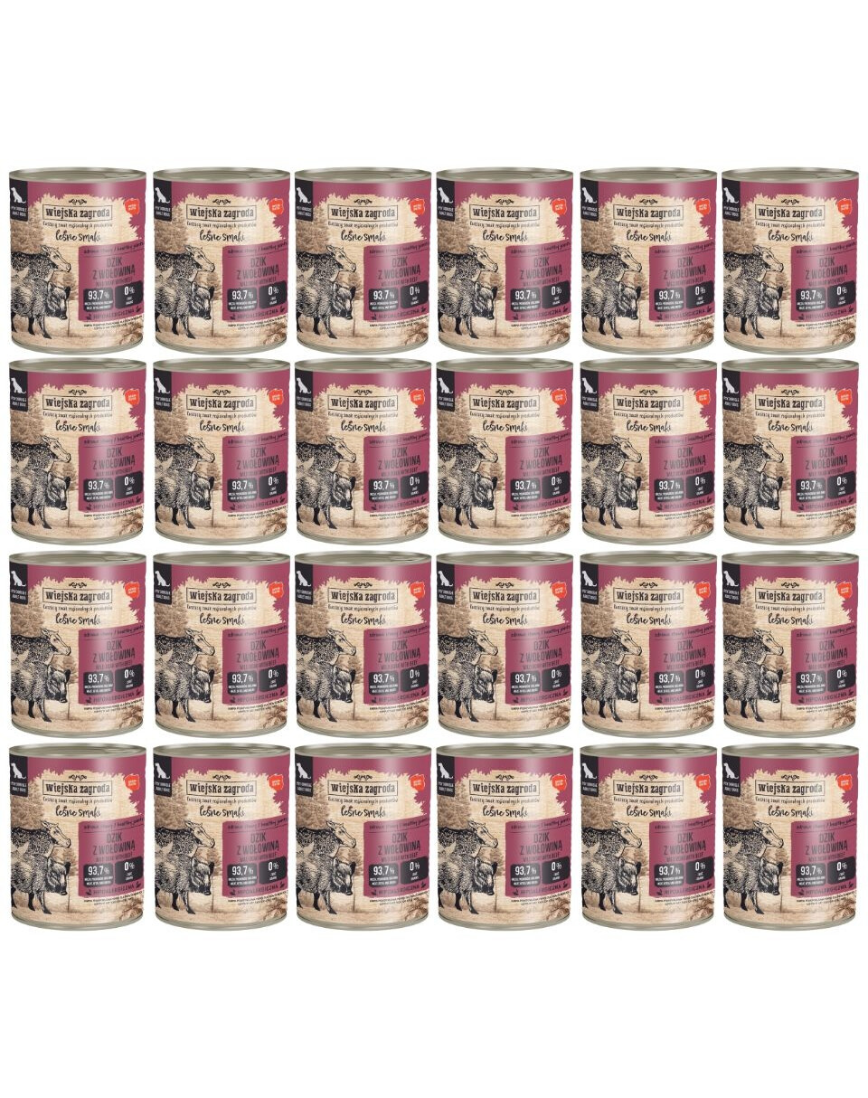 WIEJSKA ZAGRODA Leśne smaki Dzik z wołowiną mokra karma dla psów 24x800 g