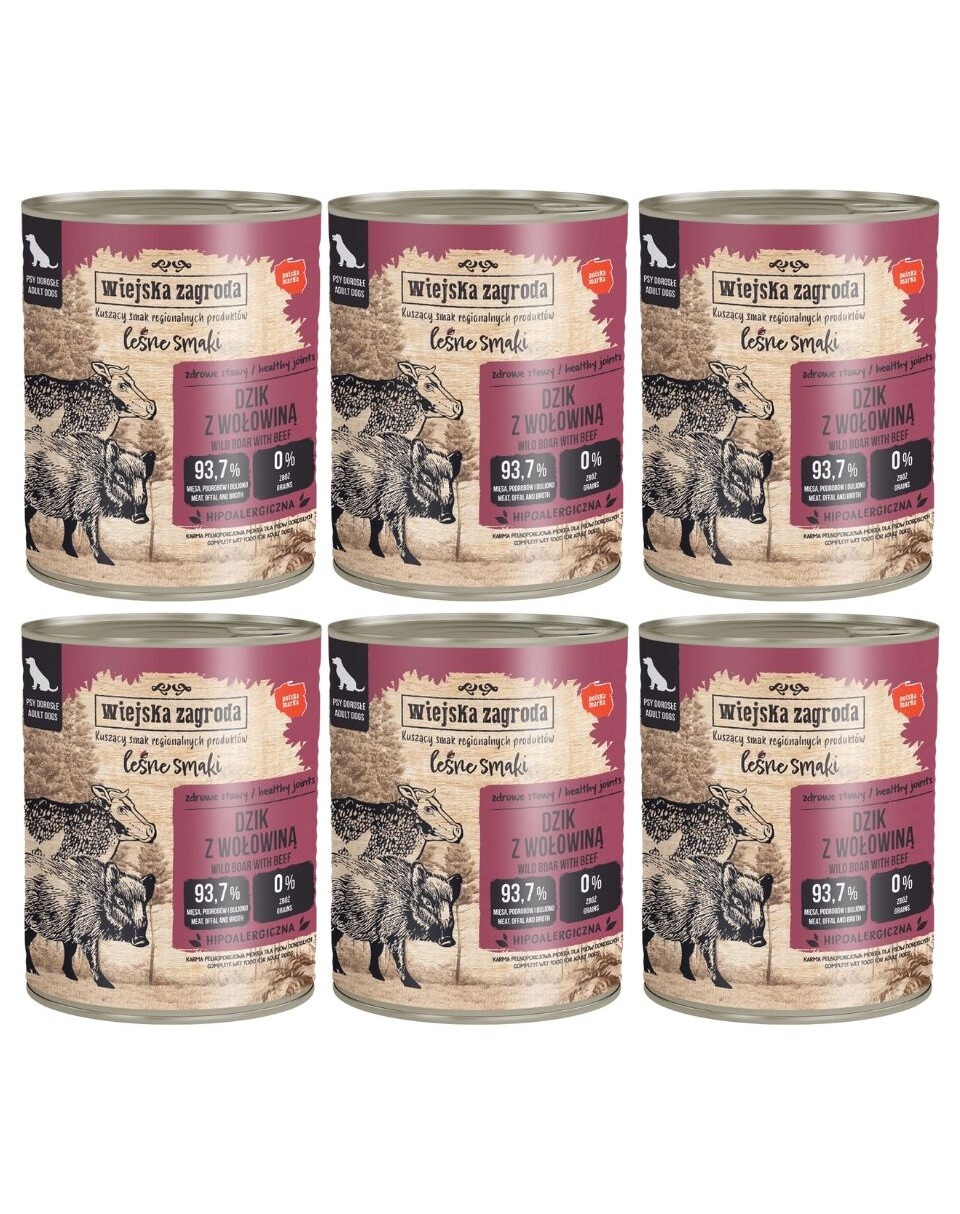 WIEJSKA ZAGRODA Leśne smaki Dzik z wołowiną mokra karma dla psów 6x800 g
