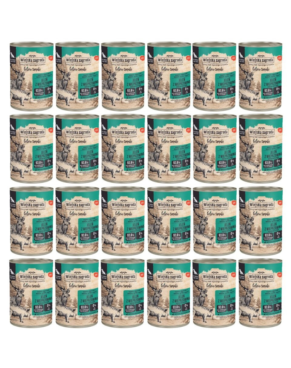 WIEJSKA ZAGRODA Leśne smaki Jeleń z wieprzowiną mokra karma dla psów 24x400 g