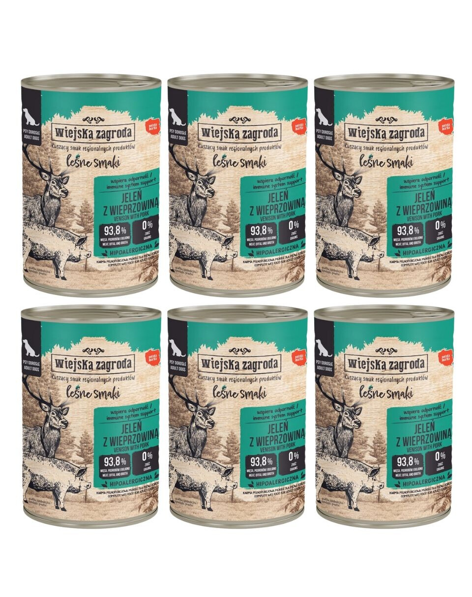 WIEJSKA ZAGRODA Leśne smaki Jeleń z wieprzowiną mokra karma dla psów 6x400 g