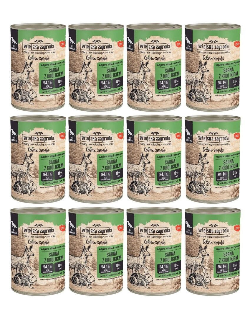 WIEJSKA ZAGRODA Leśne smaki Sarna z królikiem 12x400 g mokra karma dla psów dorosłych