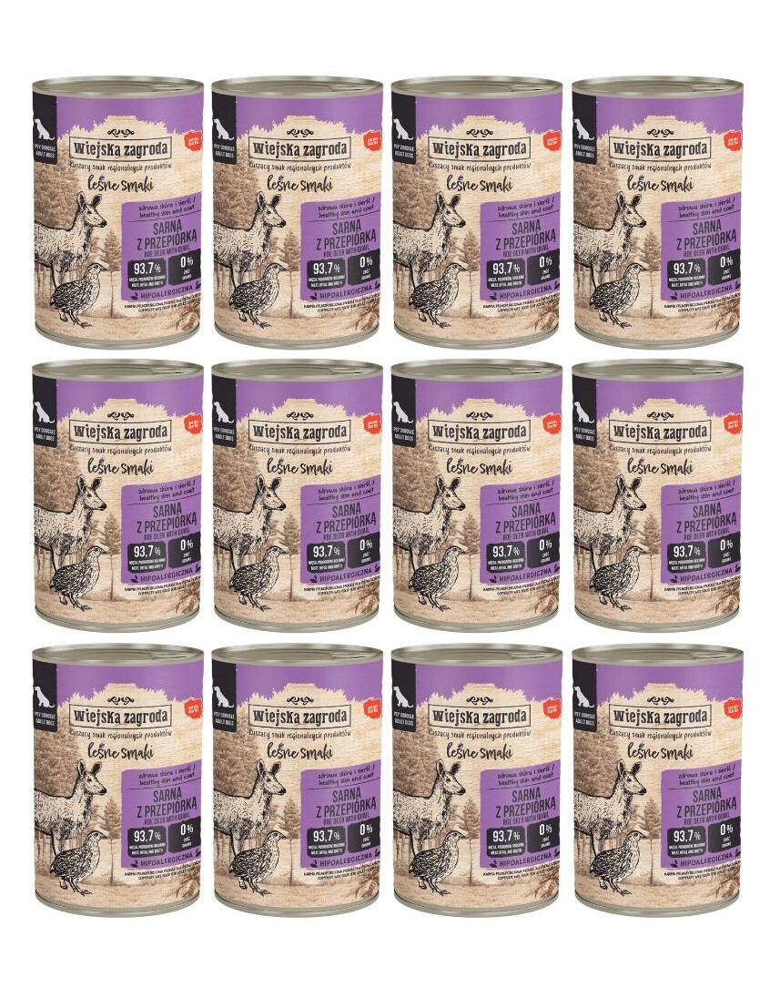 WIEJSKA ZAGRODA Leśne smaki Sarna z przepiórką mokra karma dla psów 12x400 g