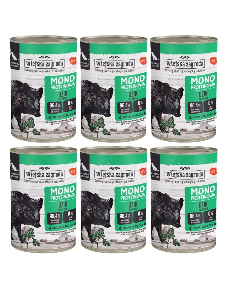 Poznajcie monoproteinowe karmy mokre Wiejska Zagroda dla psa. Każda puszka zawiera jeden rodzaj mięsa, które plasuje się na pierwszym miejscu każdego składu! To także wyjątkowe superdodatki w postaci owoców lub warzyw oraz ziół, które pełnią dodatkowe role w dbaniu o zdrowie mocny organizm psiaka.