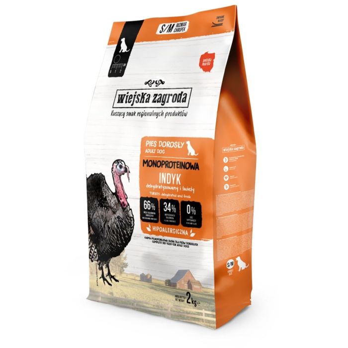 WIEJSKA ZAGRODA Monobiałkowa Indyk dla psów chrupki S/M 2 kg