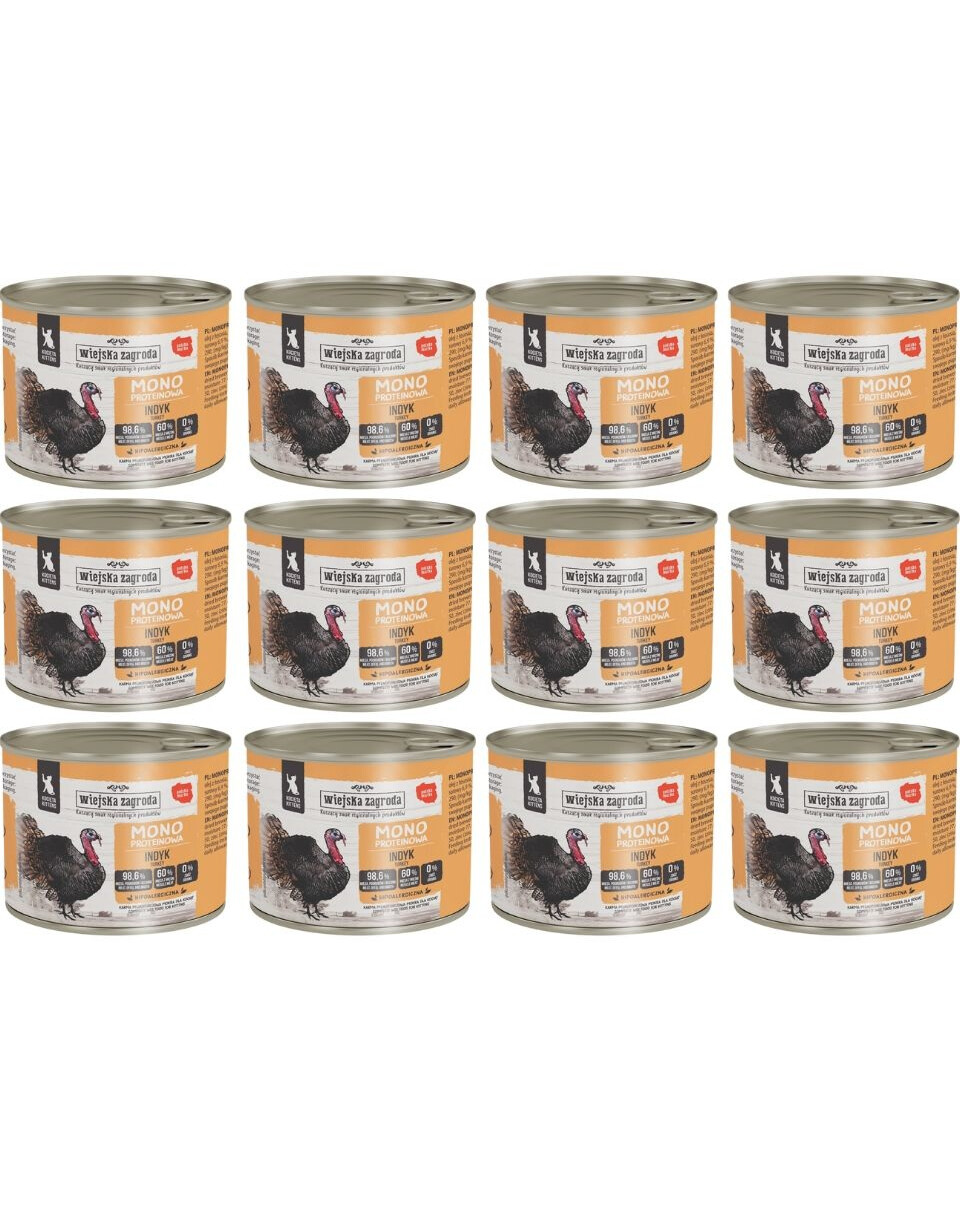 SKŁAD: 70% indyk (60% mięso, 8% wątroba, 2% serca), 28,6% bulion z indyka, 1% składniki mineralne, 0,2% olej z łososia, 0,1% drożdże piwne suszone, 0,1% ekstrakt Yucca Mojave.
