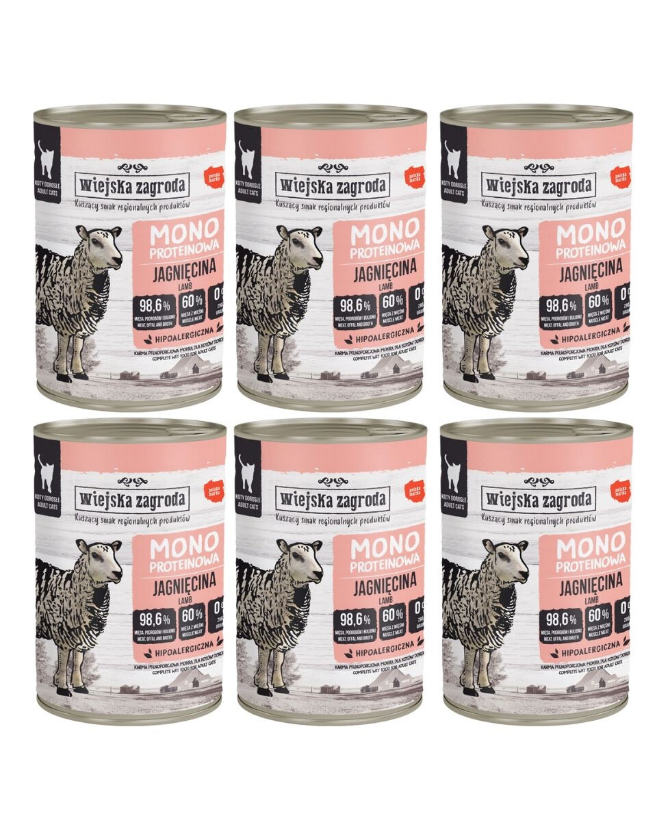 WIEJSKA ZAGRODA Monobiałkowa Jagnięcina mokra karma dla kotów 6x400 g